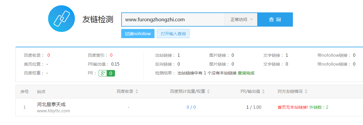 5. 网站存在一条单链,单链相当于出现链接,也就是免费为别人打广告,自己的网站也不会取得收益,建议删除,如果不能删除的话可以也可以加上nofollow标签。